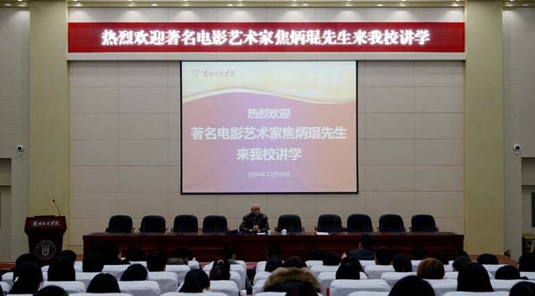 12月19日下午,我省著名编剧、电影导演、兰州电影制片厂原厂长焦炳琨先生应邀在学术报告厅作了一场题为《寻求不同――微电影创作技巧》的学术讲座。甘肃音像出版社社长、甘肃省就业促进会副会长孙静,公司党总支书记师克谦、副经理刘锐,公司2013、2014级员工及部分老师共200余人聆听了讲座。讲座由公司党总支书记师克谦主持。