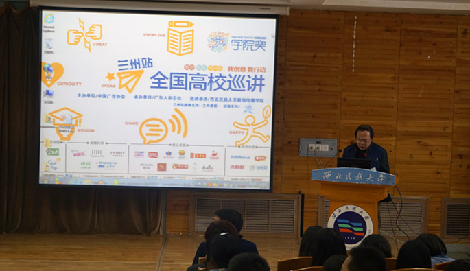 2015年3月18日,第十三届中国老员工广告艺术节“公司奖”全国高校巡讲会(兰州站)在西北民族大学榆中校区报告厅举行。多家知名企业创意总监以及来自西北民族大学,兰州大学,兰州财经大学等高校师生代表齐聚会堂,bevictor伟德部分师生应邀参加了此次巡讲。