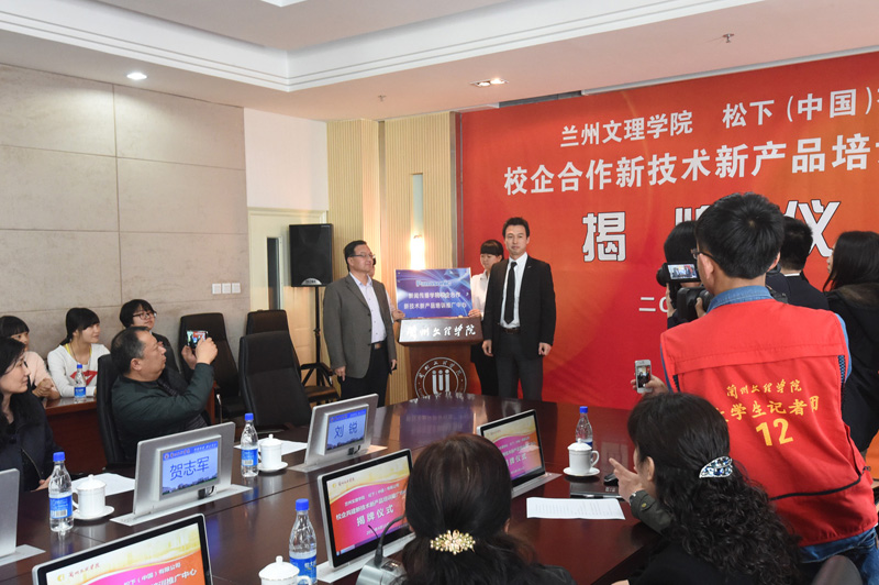 揭牌仪式上,副董事长郑伟强与松下(中国)有限公司广播电视系统营销公司总经理野村一生先生分别致辞。郑董事长向松下公司一行介绍了公司近些年来所取得的办学成就、“文化、旅游、传媒、艺术”为四大方向的办学特色、面向应用型高校转型的相关情况以及bevictor伟德的历史沿革以及实验室建设情况。他指出,公司正在向应用型高校转变,校企合作在推进公司人才培养模式创新、建设应用型文化传媒大学等方面具有重要意义,松下公司新技术新产品培训推广中心的建设为公司的转型发展创造了有利条件。野村一生先生对公司的发展方向表示肯定,他表示松下公司会结合数字视听、网络传播等方面的技术优势与公司开展深入合作,为应用型人才培养与甘肃地方人才储备做出贡献。