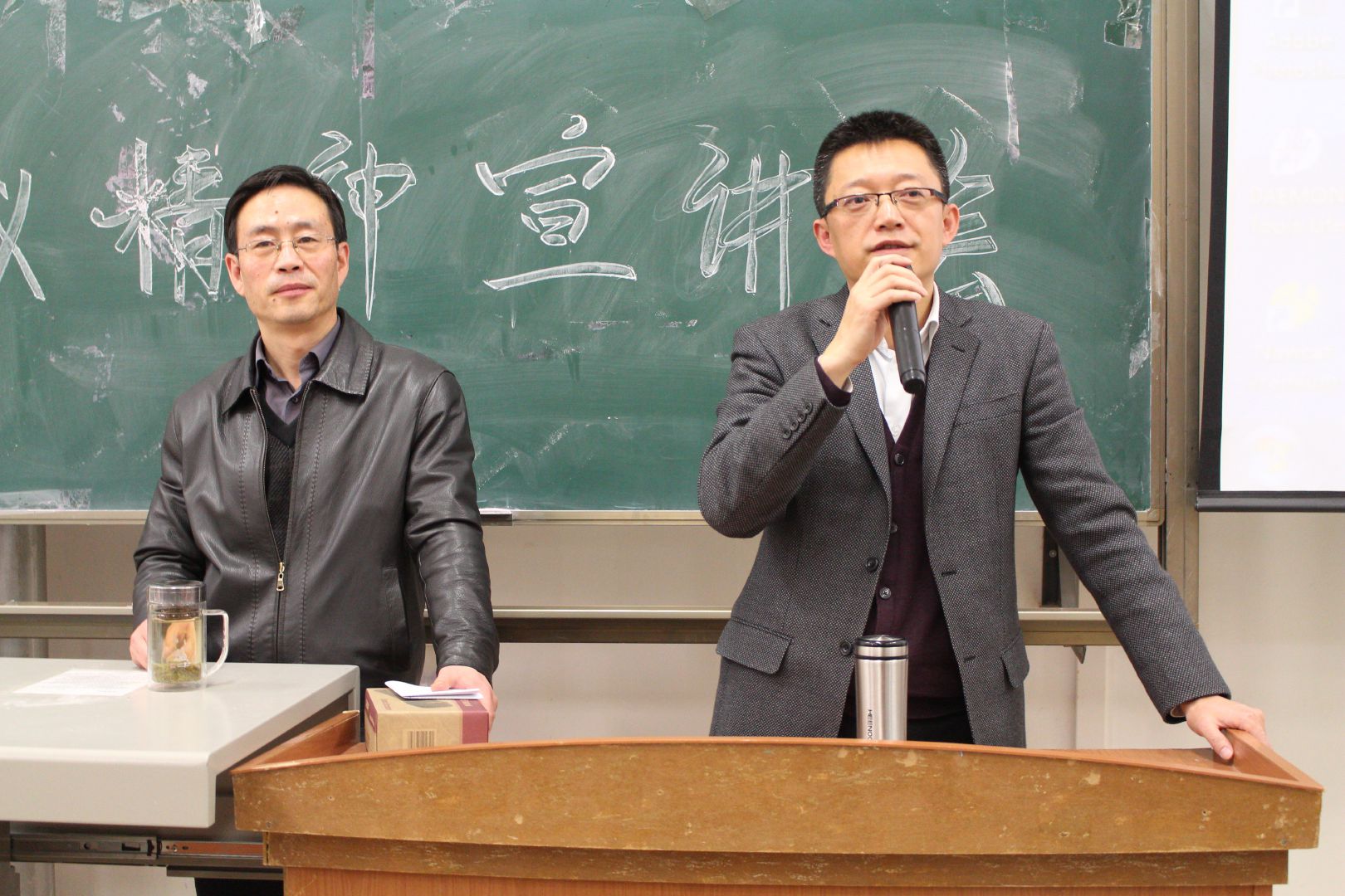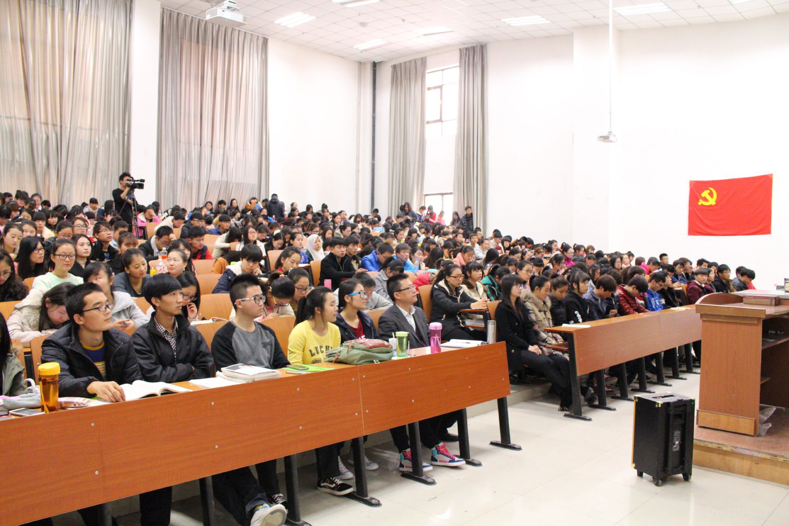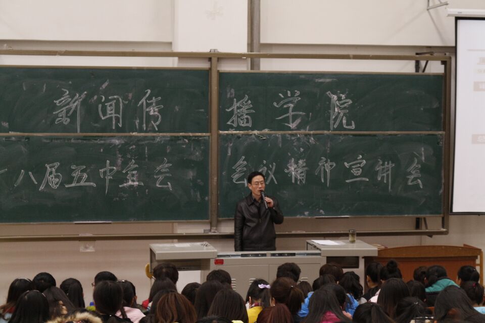 在宣讲会上,宿光平教授从十八大五中全会的主要内容、核心举措、如何贯彻落实等三个方面向同学们做了宣讲,重点对十三五规划的背景、我国现阶段亟待解决的矛盾、国内政治经济发展新常态等方面通过大量数据和案例向大家做了阐释,宣讲会气氛热烈,掌声不断。