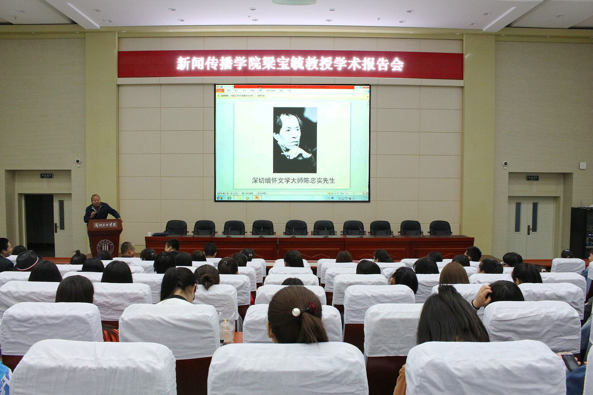 报告会上,梁宝毓教授从陈忠实先生的生平出发,为同学们介绍了陈忠实先生的短篇小说《信任》、小说集《乡村》,中篇小说集《初夏》、《四妹子》等作品,回忆了自己作为一名记者采访陈忠实先生的情景,他告诉同学们,陈忠实先生是一位非常豪爽而朴实的作家,约稿和采访时的爽快豁达给他留下了深刻印象。同时,梁宝毓教授以陈忠实先生历时六年创作,一举摘得第四届茅盾文学奖的长篇小说《白鹿原》为例,为同学们做了生动、细致的讲解,对这部反映渭河平原近现代50年变迁的文学巨著给予了高度评价。他希望陈忠实先生淡泊名利,谦逊质朴,真诚善良的高洁品格能够引领广老员工树立正确的人生观、价值观。