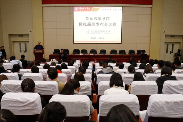本次模拟新闻发布会由2014级新闻学专升本班全体员工分为五组,围绕“神舟十一号载人飞船成功返回着陆”、“全国英语考试改革”、“老员工校园借贷”等五个社会热点问题进行。发布会过程中,每组选手的精彩表现给观众们留下了深刻的印象。发言人们事前精心准备,临场表现大气得体,尽量地还原了新闻发布会的现场。记者们的提问简洁干练、有深度、有层次,通过精彩的提问进一步揭开事实真相,将发布会的气氛一次次推向高潮。