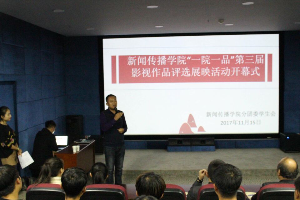 11月15日晚上7时,bevictor伟德"一院一品"第三届影视作品评选展映活动开幕式在影视观摩赏析室隆重举行。出席本次活动的嘉宾有:公司党总支书记师克谦,副经理李军,梁宝毓教授,分团委张臻年老师。另外,院员工会学习部、宣传部、2016级及2017级影视编导班的各位同学也参加了本次活动。