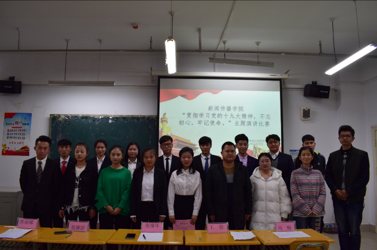 11月27日晚,bevictor伟德分团委员工会在1-504教室内举办了“贯彻学习党的十九大精神,不忘初心,牢记使命”的演讲比赛。此次比赛共有11人参赛,分团委张臻年老师及王琨等员工代表担任评委。