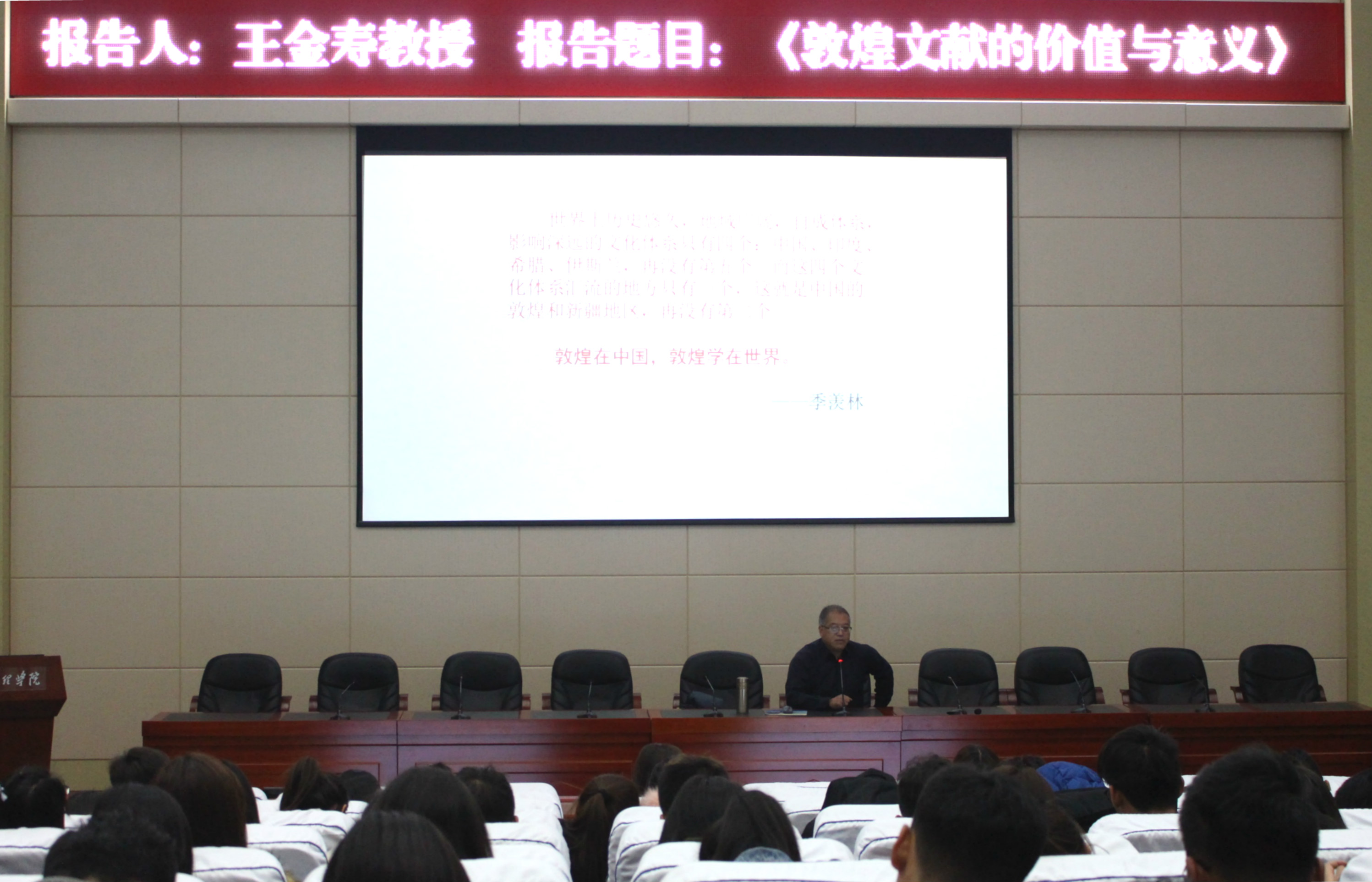 公司党总支书记王金寿11月22日晚在学术报告厅为公司员工作题为《敦煌文献的价值与意义》的学术报告。