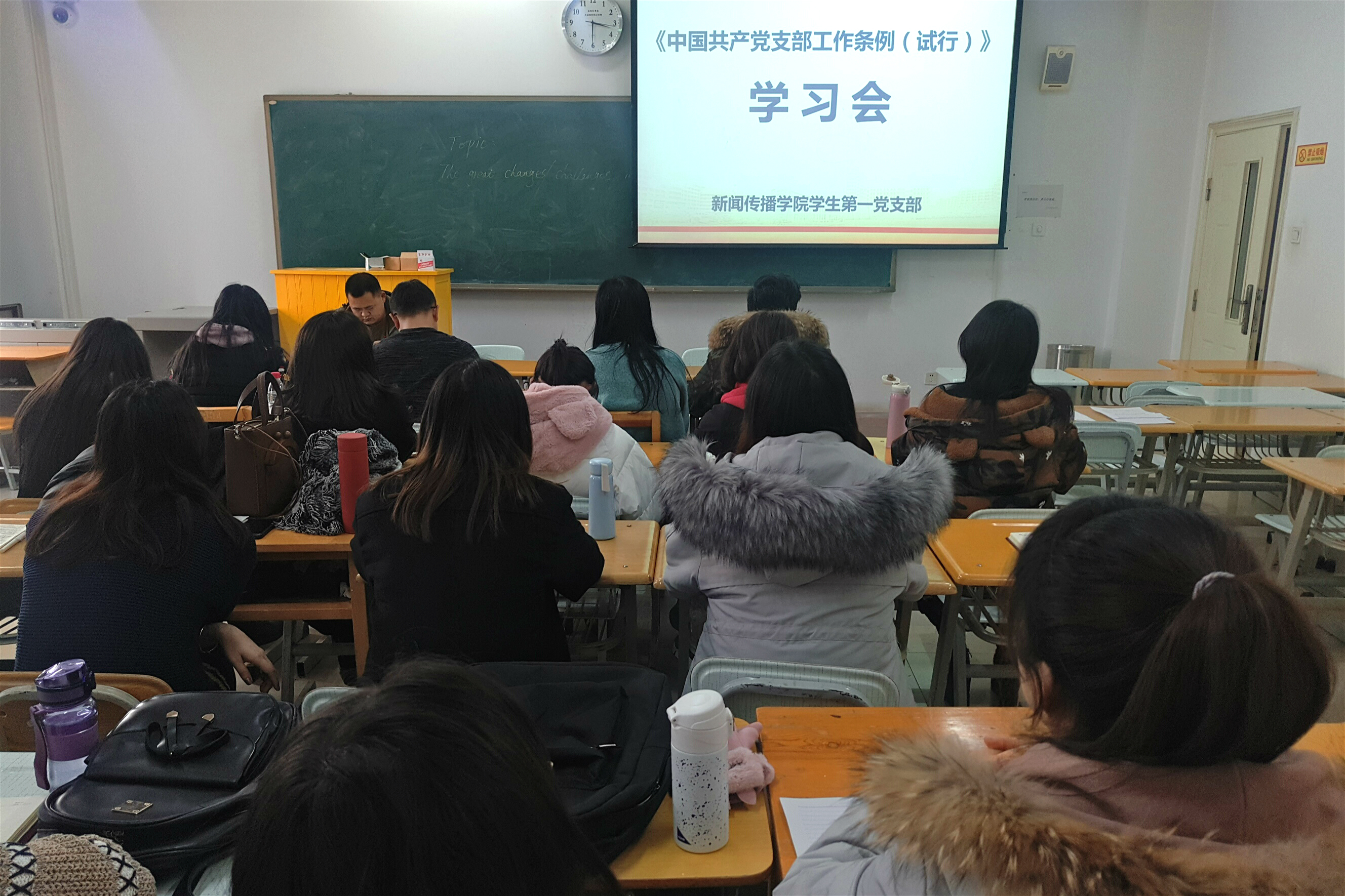 12月27日下午,bevictor伟德员工第一党支部在3-604开展学习《中国共产党支部工作条例(试行)》主题党日活动,员工第一党支部书记张臻年主持活动并讲话。员工第一党支部全体党员、预备党员参加了此次活动。