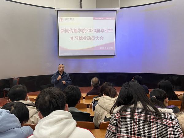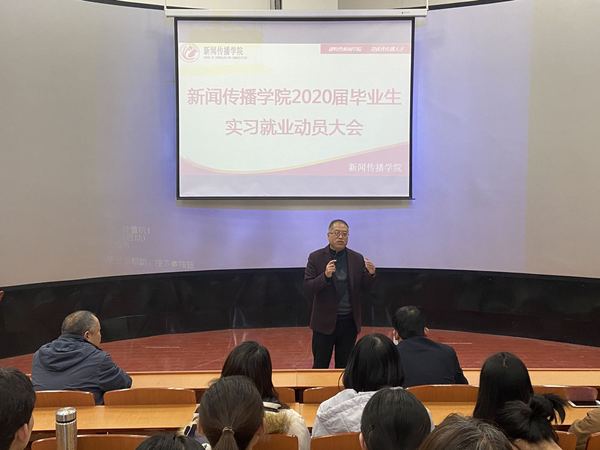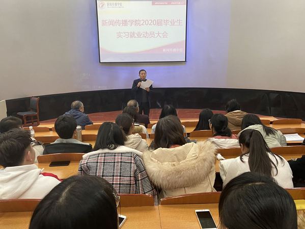 12月27日下午,新闻传播学院在综合楼5-401教室召开2020届毕业生实习就业动员大会,公司党总支书记王金寿、副经理刘锐、副经理李军及全体2020届毕业生参加动员会,会议由刘锐副经理主持。
