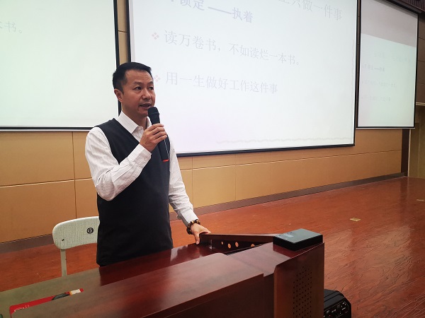 王岳老师就“认识自己”这一主题展开,将职业分为社会型、日常型、现实型、艺术型等不同类型,让员工能明确自己感兴趣的职业类型和职业方向。他通过实例向员工解释了职业价值观,使员工对职业选择有了更多的了解。接着,王岳老师从社交习惯、选择独立性、时间观念等维度提出问题,引导员工明确自己的性格类型和能力类型并且帮助员工寻找与自身能力类型相匹配的职业。王岳老师结合自己的经历,强调了一生只做一件事的重要意义,即只有树立远大的理想信念并且脚踏实地的努力追求才有可能获得成功。讲座最后,同学们积极提问,与王岳老师进行了良好的互动交流。