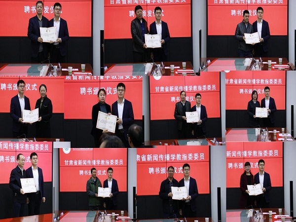 在成立大会上,教育厅高教处副处长许力斌代表教育厅宣布甘肃省新闻传播学教学指导委员会成立,并给全体委员颁发了聘书。