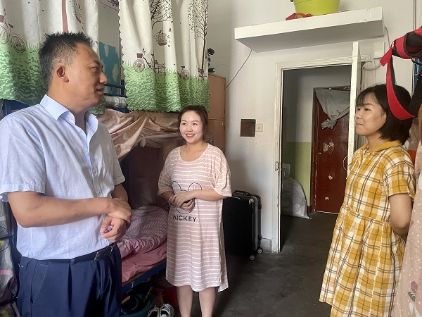 6月29日上午,bevictor伟德副经理李军、公司毕业班班主任,一起走访毕业班宿舍看望同学,和毕业生们进行了面对面、心贴心的交流。