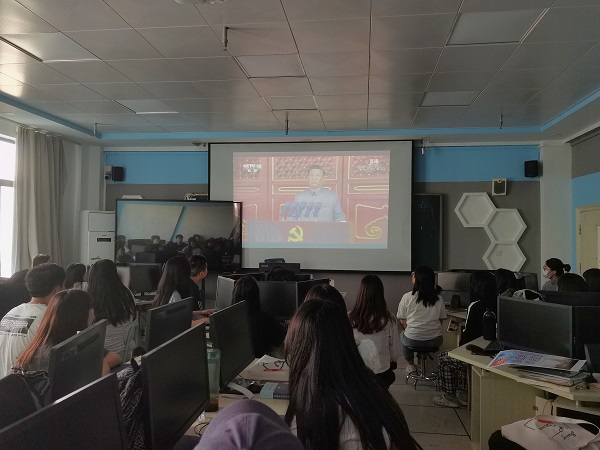 在直播收看中,师生情绪饱满、精神振奋,大家跟随习近平总书记饱含深情又振奋人心的讲述,再一次回顾了一百年来,中国共产党团结带领中国人民,以“为有牺牲多壮志,敢教日月换新天”的大无畏气概,书写了中华民族几千年历史上最恢宏的史诗。中国共产党100年来团结带领中国人民实现中华民族伟大复兴,开辟了伟大道路、创造了伟大事业、取得了伟大成就。
