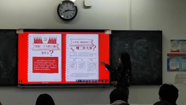发言毕,同学们又通过12张图片更加深入了解了“二十大”的内容与精神内涵,分别学习了“党的二十大的主题是什么?““从现在起,中国共产党的中心任务是什么?”“前进道路上必须牢牢把握的重大原则是什么?”等内容。