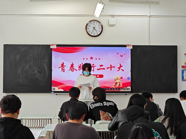 活动过程中,同学们一起观看了二十大的相关视频,王玥、杨阳、宫明霞三位同学通过朋辈对话的形式分享了他们观看后的感悟,王玥告诉同学们,“要满怀对党和国家事业繁荣发展的期待和信心,更加坚定理想信念,始终以党的二十大精神为指引,用实际行动奉献青春力量,绽放青春之光,早日成长为堪当复兴重任的时代新人,在开创新时代中国特色社会主义伟大实践中贡献自己的力量”。