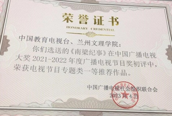 4月1日晚,由中国广播电视社会组织联合会、中共重庆市委宣传部主办,中国广播电视社会组织联合会纪录片委员会、重庆广播电视集团(总台)、中共重庆沙坪坝区委等单位承办的“记录新征程”2023年纪录片大会颁奖典礼在重庆举行,公司原创制作,与中国教育电视台联合申获重大理论文献片立项的十集纪录片《南梁纪事》在当晚颁发的中国广播电视大奖2021-2022年度广播电视节目奖初评中荣获电视节目专题类一等推荐作品。