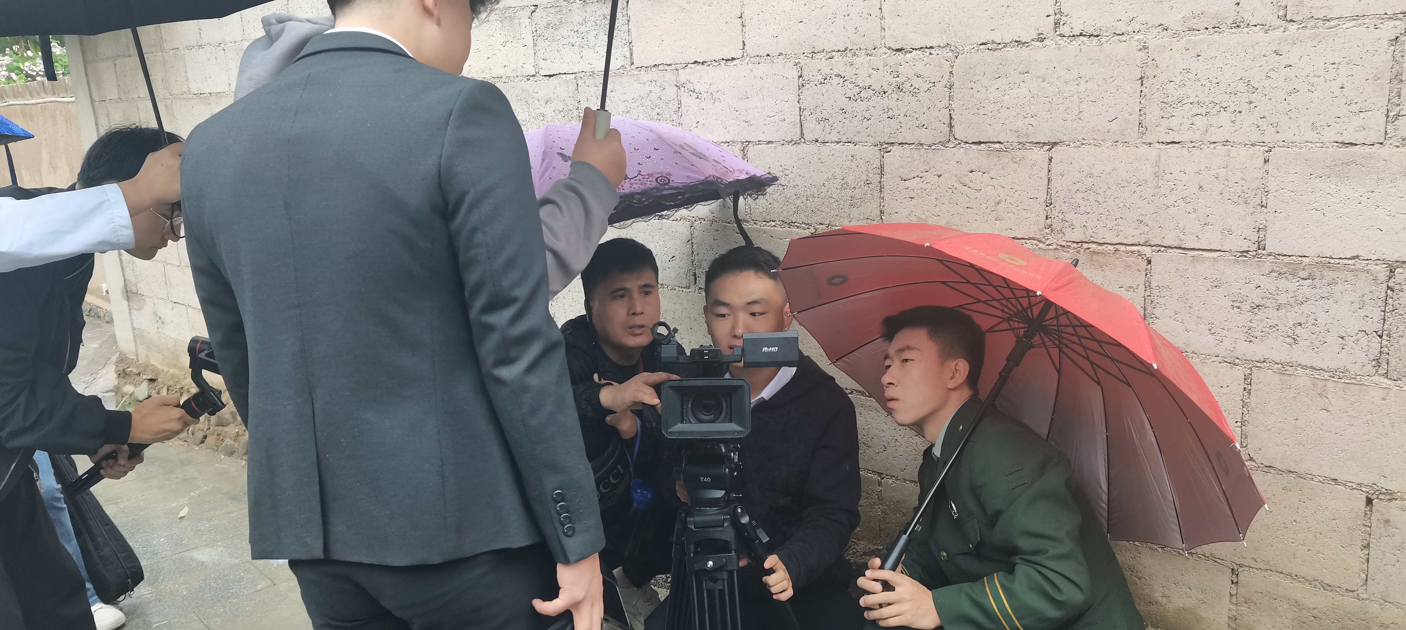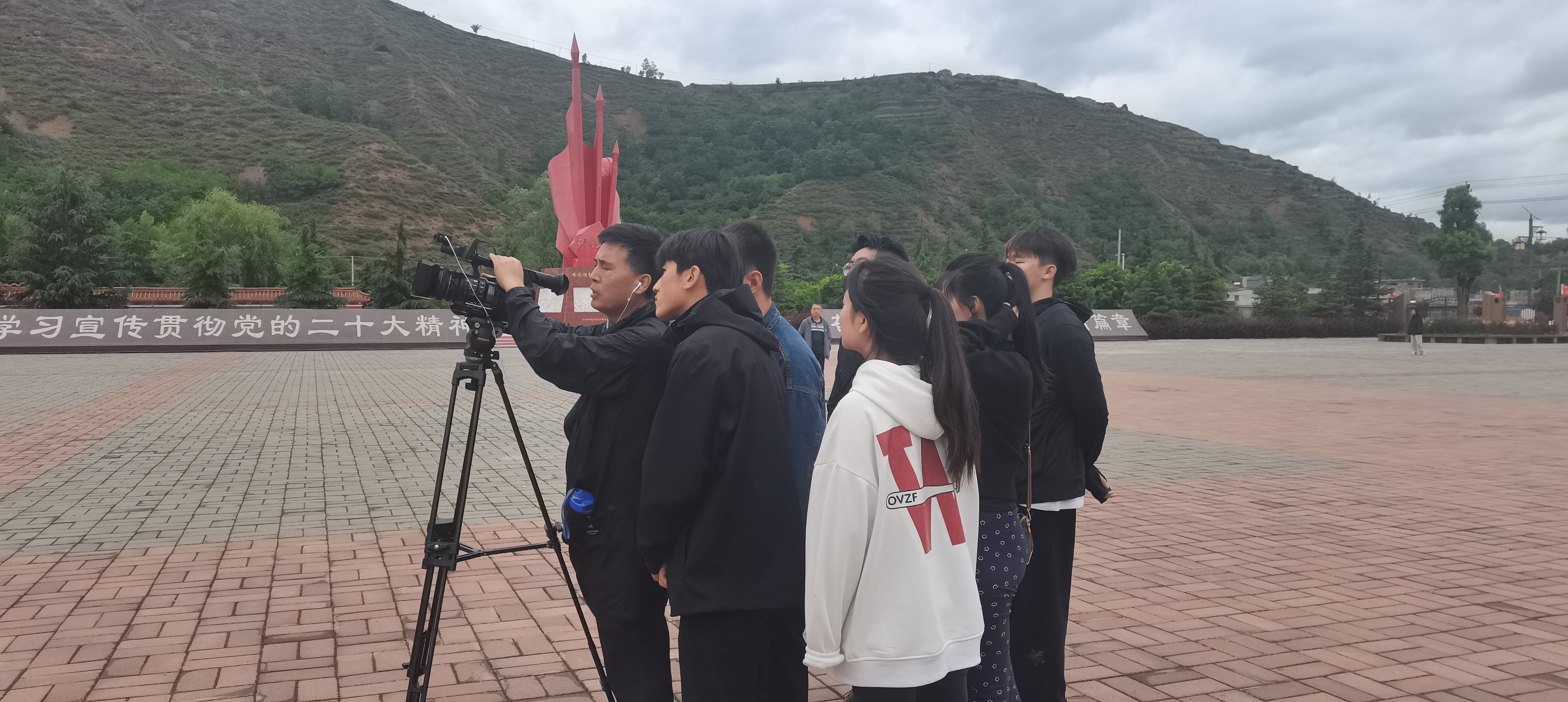 即使在拍摄过程中下了雨,但依旧阻挡不了老师同学们的拍摄热情,老师们说:当我们踏足在革命先辈们的长征路上,就要具备长征精神,不论是怎样的困难都要克服。
