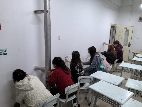 整个劳动过程中,同学们分工明确、各司其职,本着“团结互助,爱校如家”的精神,进行了认真细致地清理,为共建美丽校园贡献自己的力量。经过大家的齐心协力,教室墙面焕然一新,呈现出整洁亮丽的新气象。
