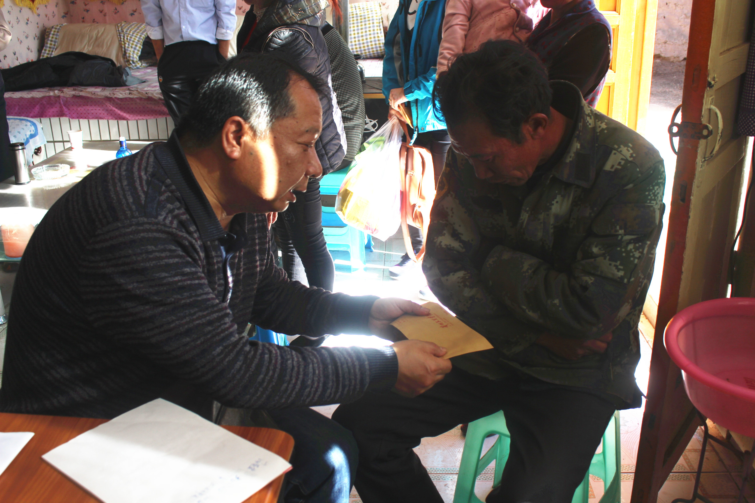 在新城村,师书记逐一走访公司联系户、详细登记资料,并为联系户送去了慰问金,通过促膝长谈,耐心倾听他们对双联帮扶工作的意见和期待,深入了解联系户各自的生活状况,共同商讨脱贫致富的办法和出路。在双联工作站,师书记、刘经理向双联工作站干部和部分村民介绍展示了公司15年暑期“三下乡”实践活动成果,播放留守儿童及空巢老人专题片,赢得了大家的称赞。并与双联工作站干部及村干部座谈,了解该村近年发展状况、农民收入来源及制约该村发展的主要原因,询问了自双联行动开展以来新城村的变化,商讨了下一步共同推进帮扶工作的重点和困难所在。
