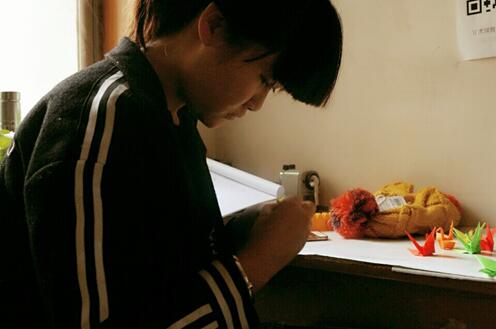 (图为马文贤同学在聋哑儿童公司为孩子们折出代表希望的纸鹤)