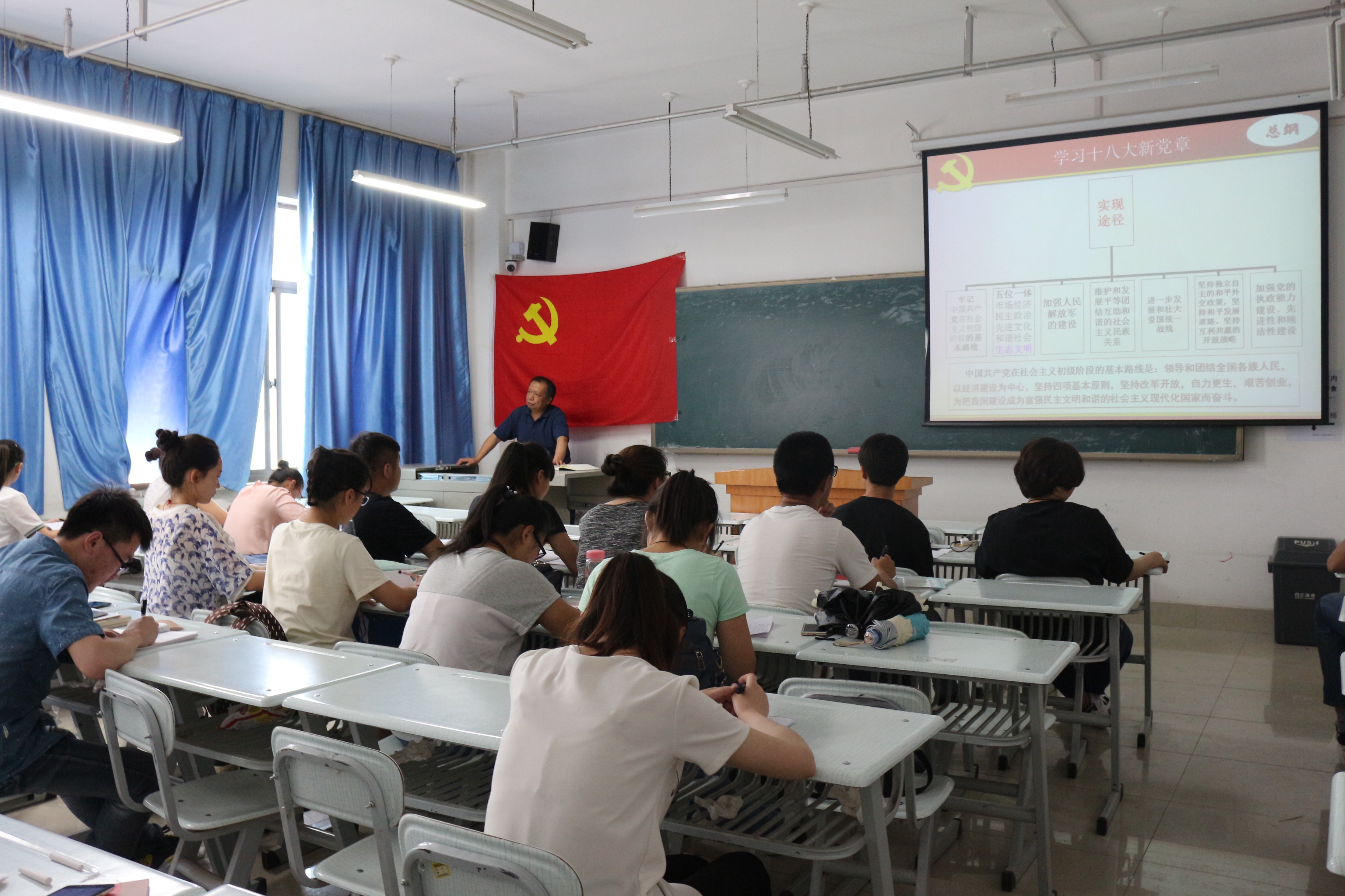 课上,刘书记带领同学们进行了庄严的入党宣誓,并对十八大修订的党章进行了全面剖析,对党的性质、指导思想、历史任务、实现途径、“十一章五十三条”的详细规定以及作为共产党员所享有的权利和义务做了生动的解读。