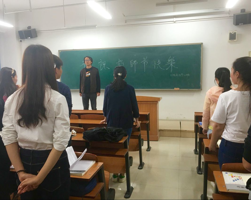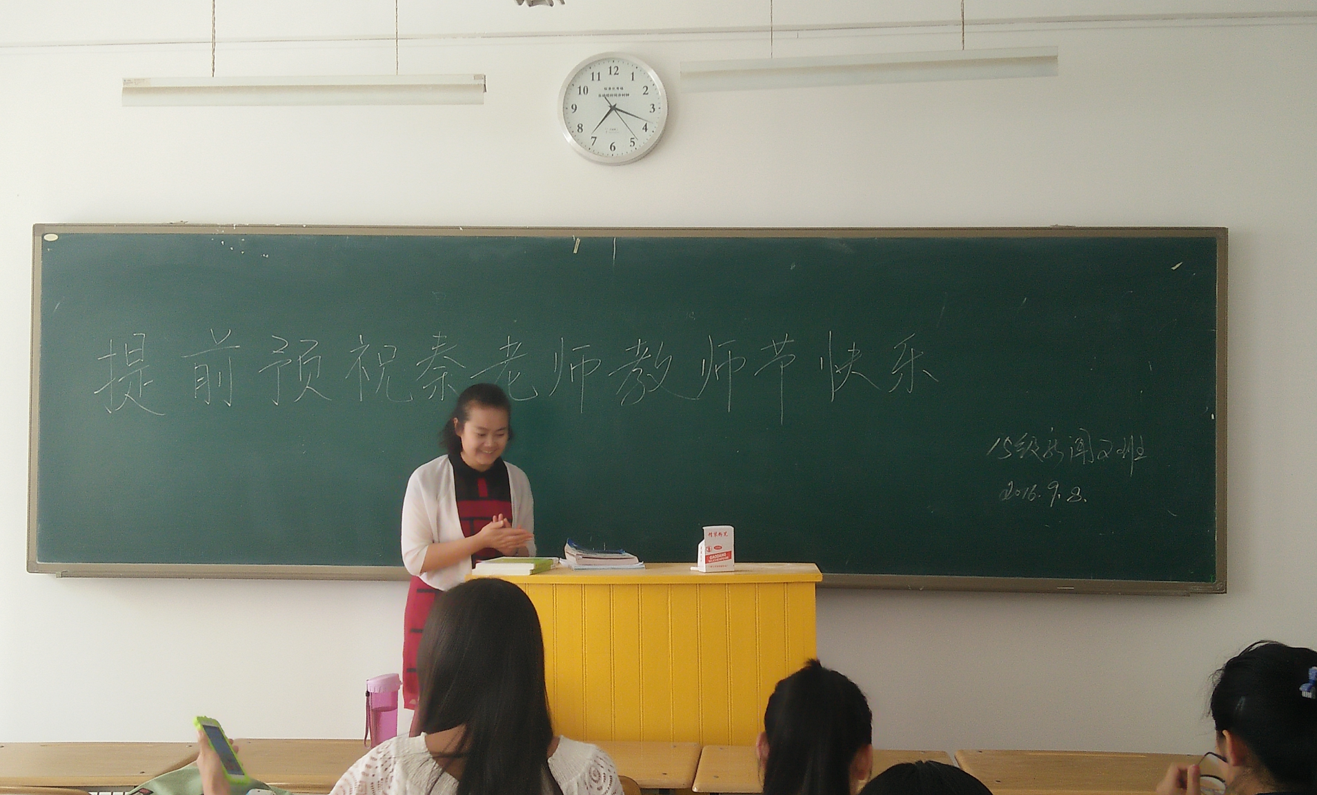 bevictor伟德各个年级、各个班级,不同专业的同学,以各种不同的方式庆祝第32个教师节,有的对着进入教室的老师齐声送上祝福,有的在班里的黑板上工整的写下“祝老师教师节快乐”的字样。2014级出版与发行班的同学们还专门制作了美观别致的ppt,向老师表达着自己的祝福。公司其他班级也用为老师送一杯水等多种多样的方式,向平时为自己传道解惑的老师们表达着感恩之情。