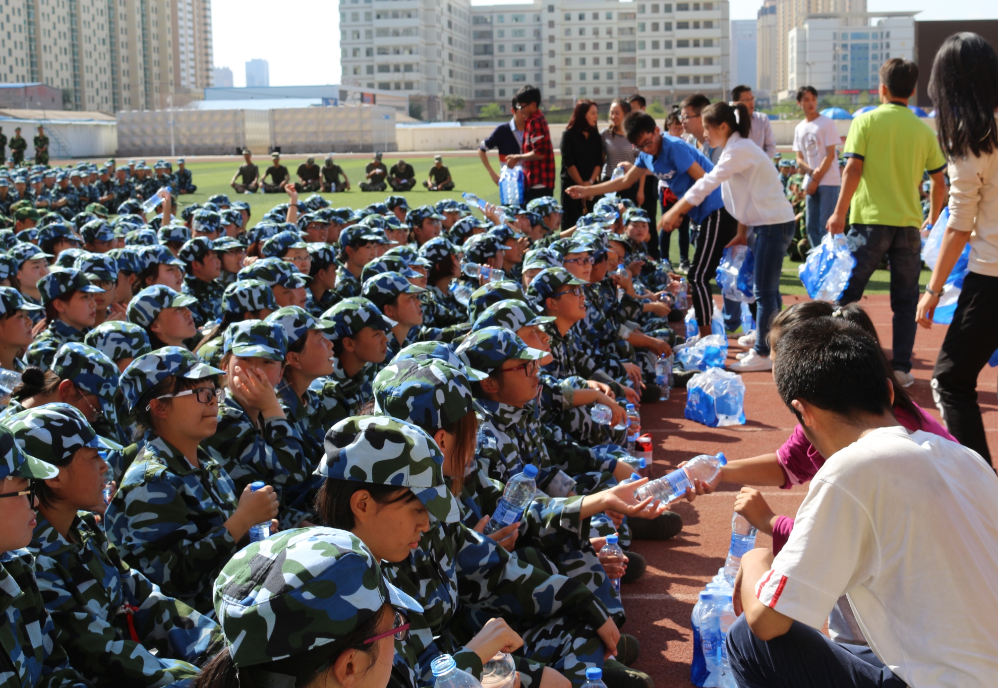 炎阳似火军训时,新闻学子挺英姿。2016年9月12日下午,公司党总支书记师克谦、分团委书记吴文娟、员工办刘婧老师以及新生班主任等,一同来到军训场慰问2016级军训教官及参训新生。