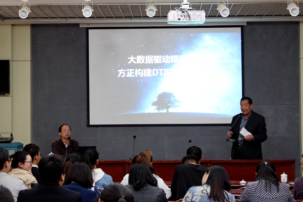 接下来北大方正西北区销售总经理景祥云对徐建教授的话做了总结,并且发表了自己对媒体转型的看法,他说现在为什么媒体转型发展难度大,归根结底是是因为人的转型困难,大数据为新媒体的转型提供了机遇,我们也应当紧随时代,共同促进传统媒体与新型媒体的融合发展,并倡导我们的教师应在教学中运用新技术,普及新知识,培养新型人才,与时代接轨。