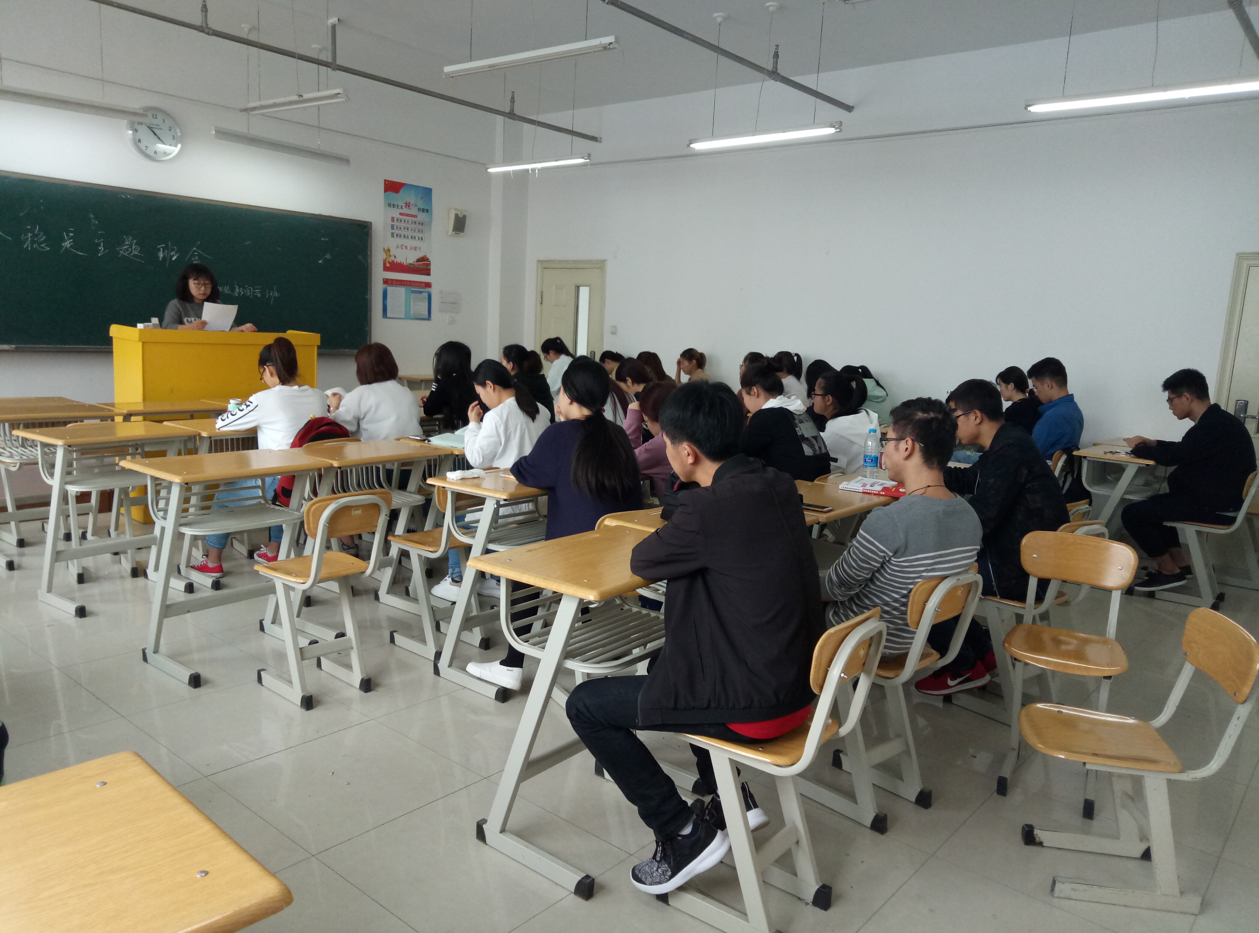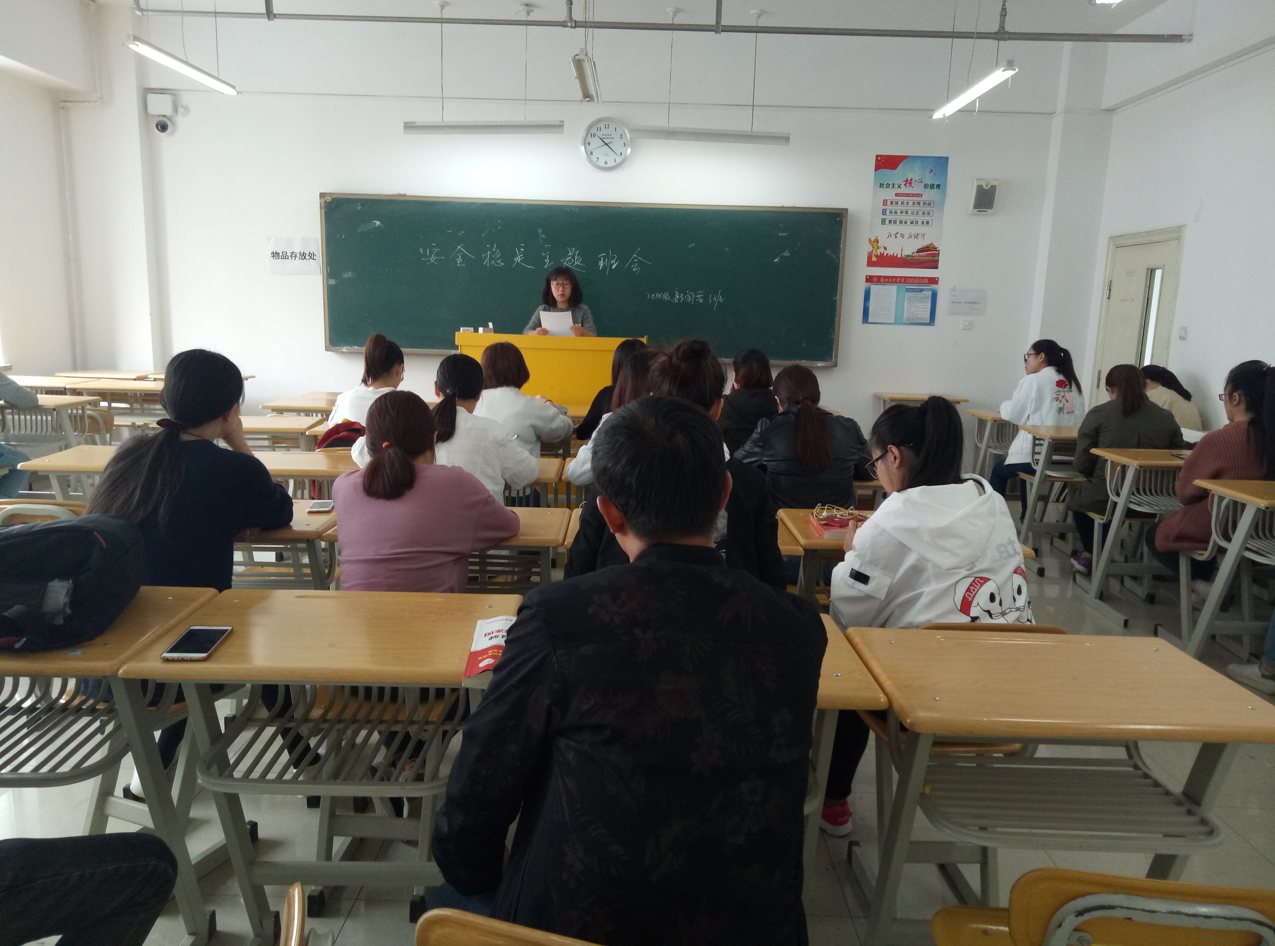 9月22日,bevictor伟德2014级新闻学三班组织召开安全稳定主题班会。会上,新闻三班班主任吴文娟老师总结了2015-2016学年本班的安全问题,调查本班同学是否陷入网贷困境的情况、对考研同学的备考情况做了了解、并询问了同学们的就业意向,另外传达了公司近期关于宿舍安全问题的检查情况。新闻三班整体学习情况稳定,未出现参与网贷的现象,考研学子备考情况良好,在开学初的招聘会上有部分同学签订合同,大家就业意向积极。