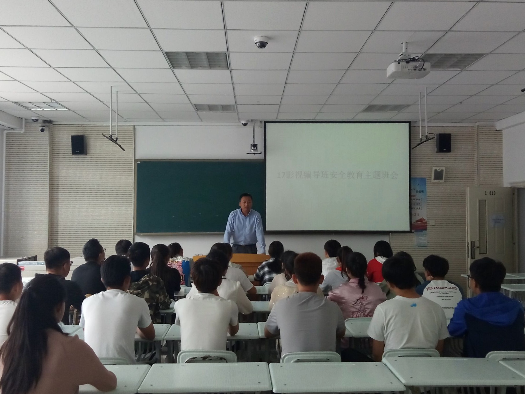 9.25日上午,17级影视编导班在1号教学楼610教室召开了安全教育主题班会,本次班会由班主任李军老师主持,员工辅导员周源及17级影编班全体同学参加了班会。