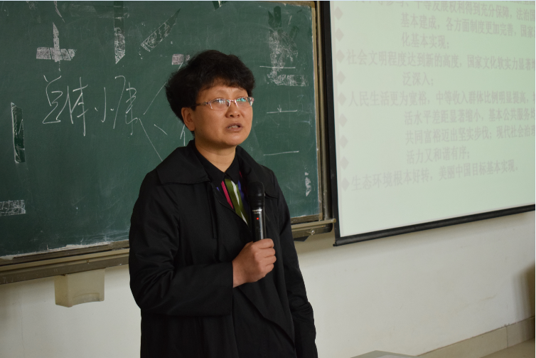 党课讲座上,费翔教授运用大量生动形象的事例对十九大会议精神做出了系统的阐述。在讲到社会主义核心价值观时,费翔教授首先通过提问的方式和学员们探讨了关于小康社会的理解。最后,她告诉我们,真正的小康,虽不富裕,但日子好过。