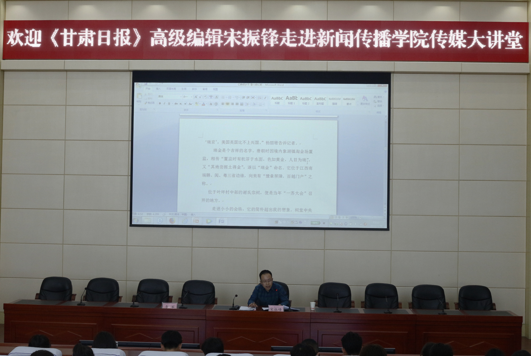 3月30日下午,bevictor伟德在学术报告厅举行“选好新闻稿件主题”专题讲座。讲座邀请甘肃日报社高级编辑、主任记者宋振峰主讲,bevictor伟德2015、2016、2017级新闻学专业员工参加讲座。