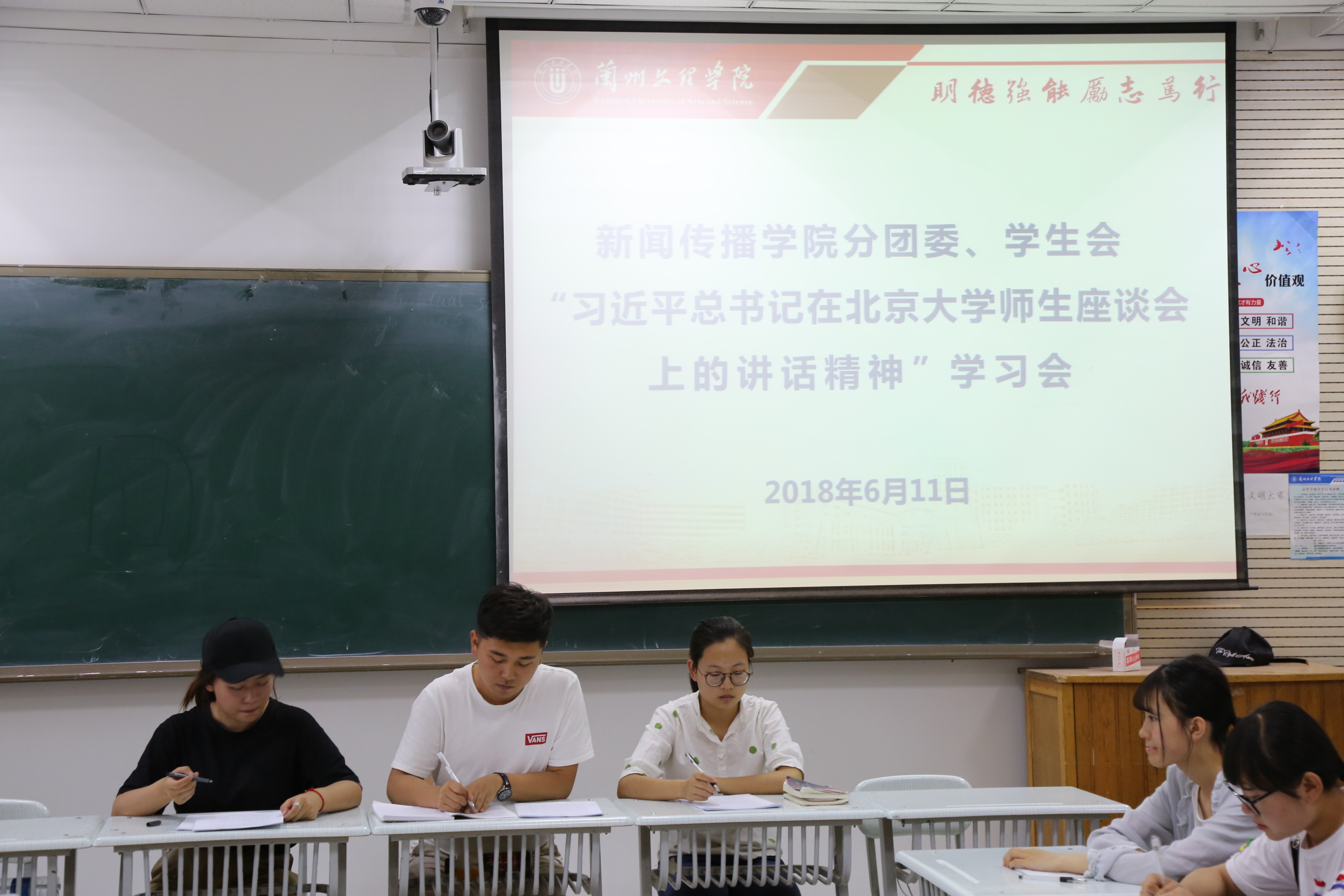 首先,陈萧传达了习近平总书记在北京大学师生座谈会上的重要讲话精神。随后,与会人员进行了交流讨论,2015级新闻二班的赵艳丽分享了自己参加座谈会的感受,她说,做为新时代老员工,更要求真学问、练真本领,知行合一、苦干实干,努力提高学习能力,扎根社会的广阔土壤中,施展才华,奉献国家,不辜负习总书记的嘱托。2017级新闻一班马冬梅说,作为追梦人和圆梦人,我们更要将青春之热血注入到逐梦路上去,将蓬勃之朝气挥洒到苦干实干中去,让峥嵘岁月见证我们的青春梦。