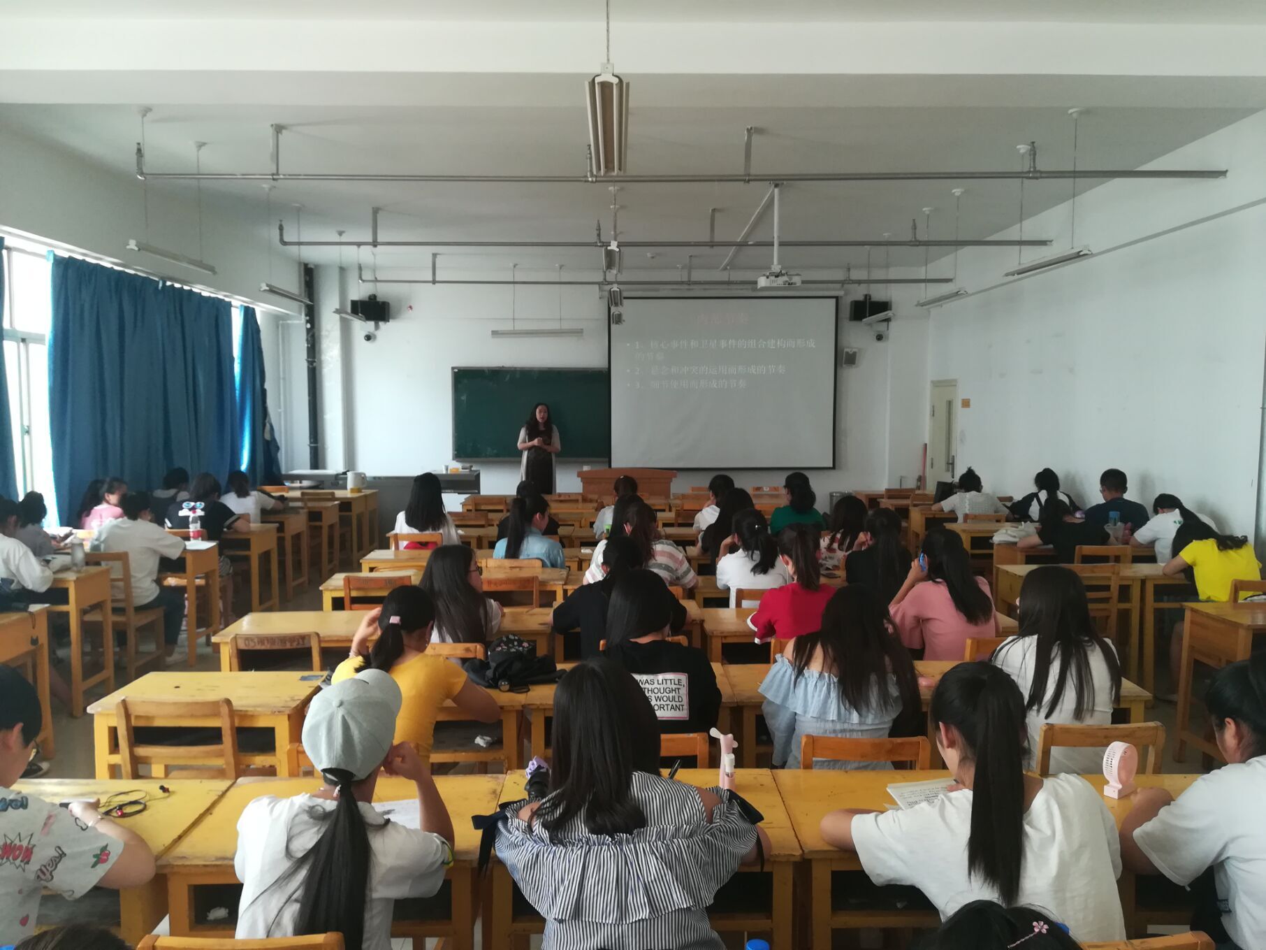 2018年6月14日,甘肃省广播电影电视总台主任编辑赵静琰走进bevictor伟德,给新闻公司学子讲解纪录片的叙事节奏。赵静琰老师以纪录片《海豚湾》为例,引出纪录片的叙事节奏。为了让同学们更好的理解“故事决定节奏”,赵静琰老师现场让同学们以“一粒纽扣”为题编讲故事,并请三位同学分享了自己的故事,给与评价。赵静琰老师又给同学们现场播放了歌剧“洪湖赤卫队”让同学们理解故事节奏。为了让同学们深入理解不同故事不同节奏,赵老师播放几种不同类别的纪录片让同学们领悟体会。通过赵老师深刻的讲解,同学们都表示对于纪录片的叙事节奏有了一定的理解。