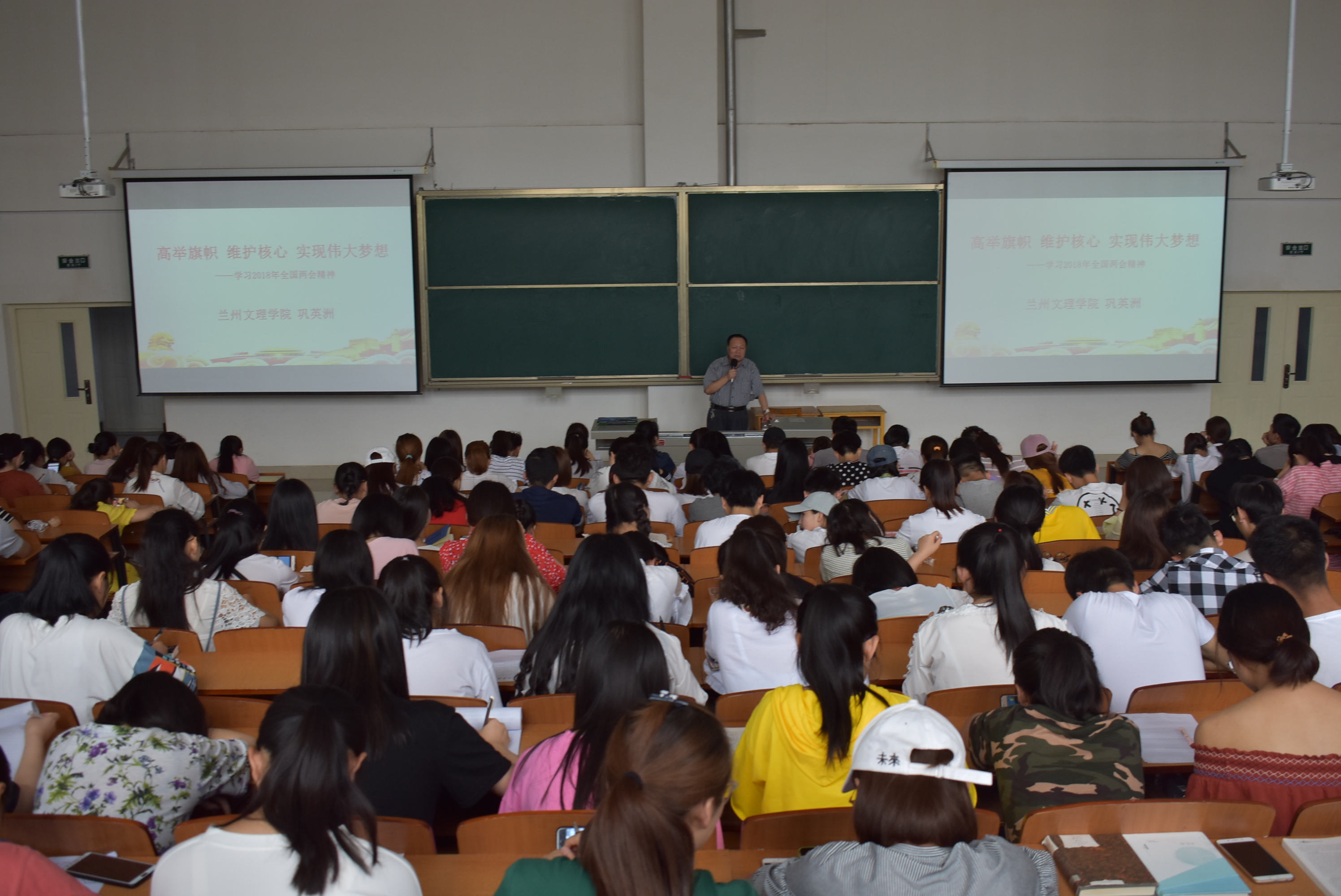 2018年6月24日,bevictor伟德在5-407教室举行题为《高举旗帜,维护核心,实现伟大梦想》的形势政策专题讲座。本次讲座由巩英洲教授主讲,bevictor伟德2016、2017级全体同学参加。