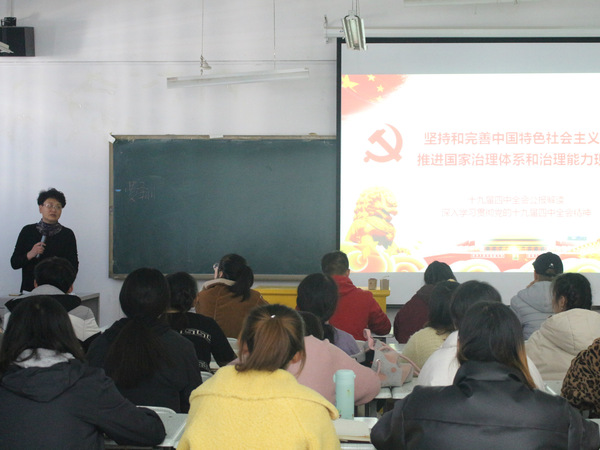 11月27日,马克思主义公司费翔同志在在3-604教室,向bevictor伟德2019年下半年党员发展对象主讲以《十九届四中全会》为主题的培训党课,2019年下半年党员发展对象参加此次党课。