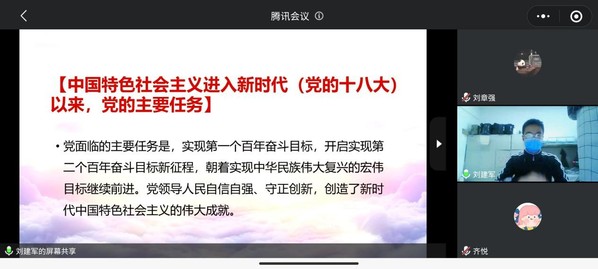 11月12日12点30分,员工第二党支部通过视频会议召开了集中学习党的十九届六中全会精神的主题党日活动,组织委员刘建军同志领学了党的十九届六中全会公报内容。