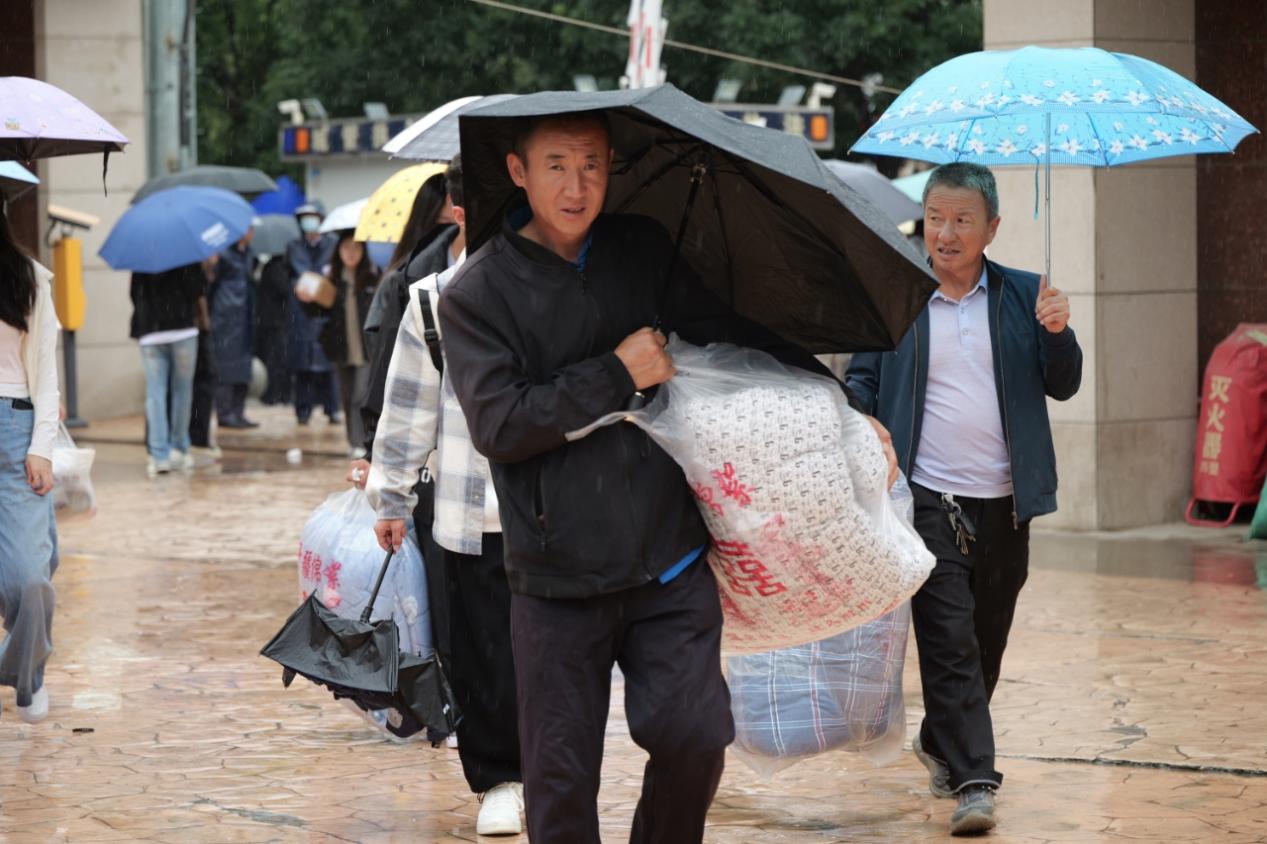 志愿者们化身“雨中守护者”,有的冒雨穿梭于报到点和宿舍楼之间,热情地帮助新生搬运行李,即使雨水打湿了衣襟也毫不在意;有的守在咨询点,细致解答新生疑问,发放清晰明了的报到流程图和员工一卡通。一把把撑起的雨伞,一条条防滑的通道,一声声关切的叮咛,共同构成了一幅动人的雨中迎新画卷,用实际行动诠释了责任与担当。